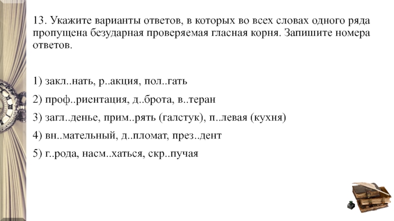 Слайд 2913. Укажите варианты ответов, в которых во всех словах одного ряда