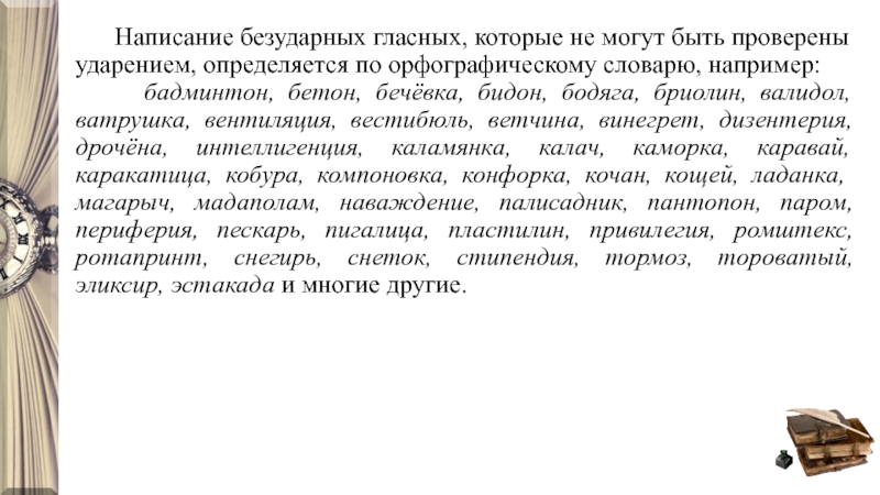 Слайд 6 Написание безударных гласных, которые не могут быть проверены