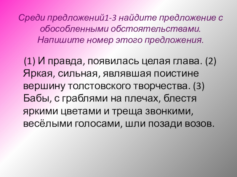 Среди предложений1-3 найдите предложение с обособленными обстоятельствами. Напишите номер этого предложения.