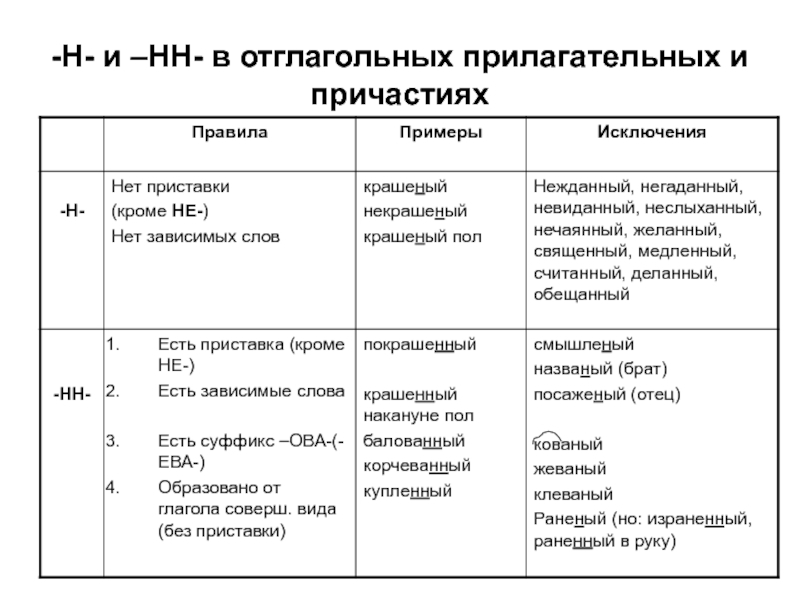 2)в основах, оканчивающихся