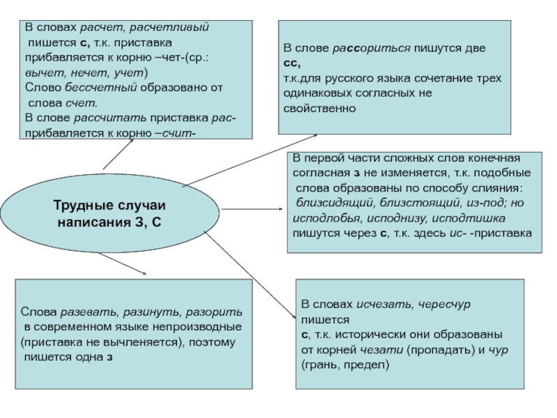 В словах расчет, расчетливый