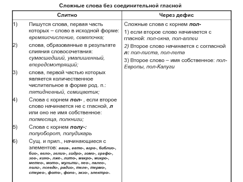 сложных слов употребляется в форме