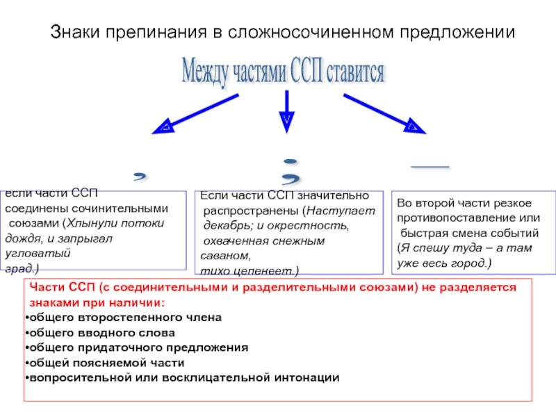 Части ССП (с соединительными и разделительными союзами) не разделяется