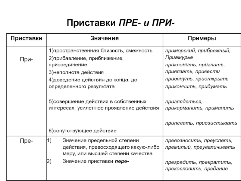 приставки и корня,