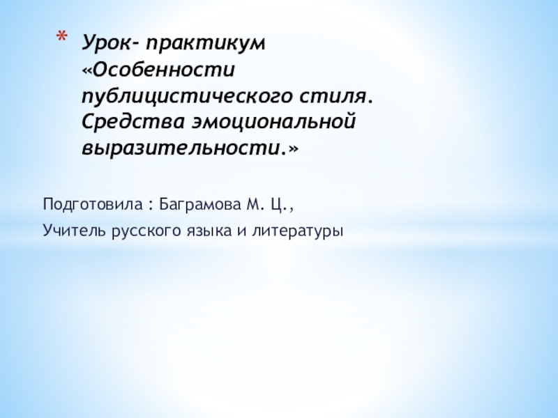 Слайд 1Подготовила : Баграмова М. Ц.,