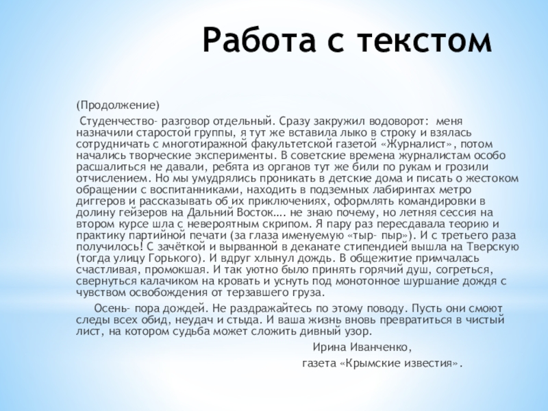 Слайд 4Работа с текстом