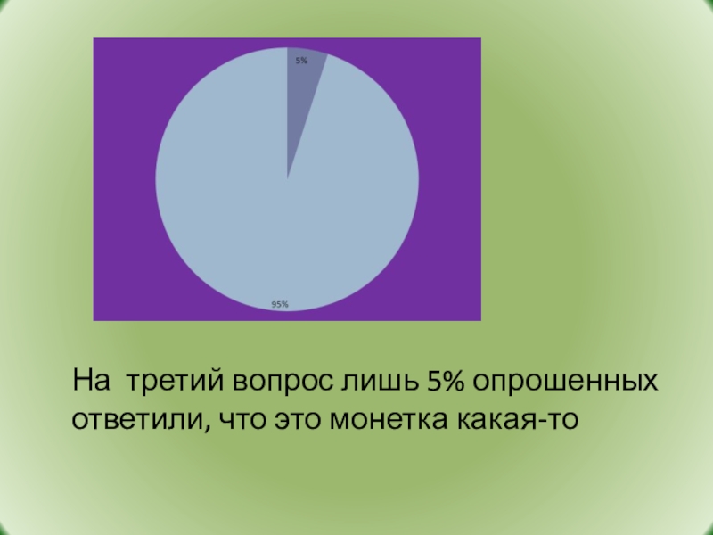 Слайд 8На третий вопрос лишь 5% опрошенных ответили, что это монетка какая-то