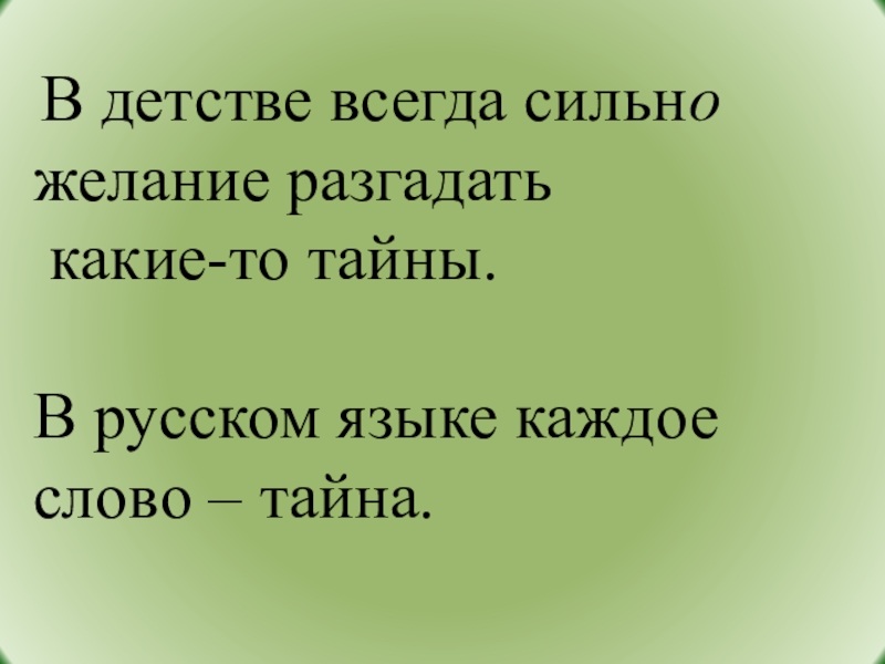 В детстве всегда сильно желание разгадать какие-то тайны. В русском языке каждое слово – тайна.
