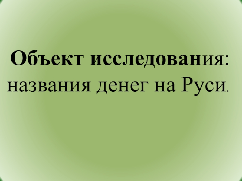 Объект исследования: названия денег на Руси.