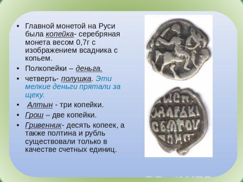 названия денег на Руси.