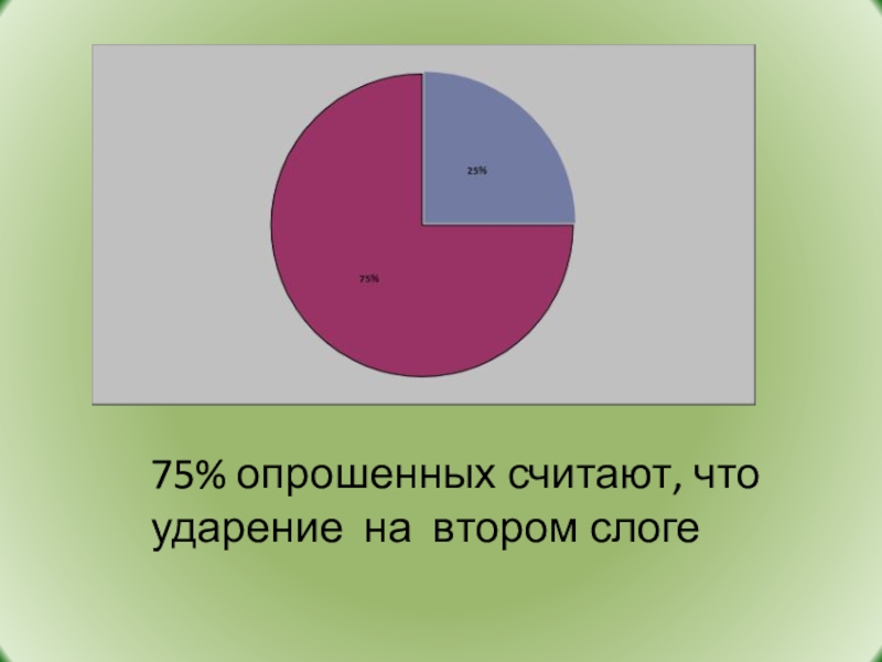 Слайд 775% опрошенных считают, что ударение на втором слоге