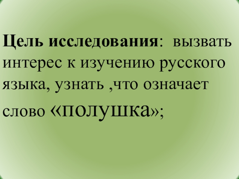Цель исследования: вызвать интерес к изучению русского языка, узнать ,что означает слово «полушка»;