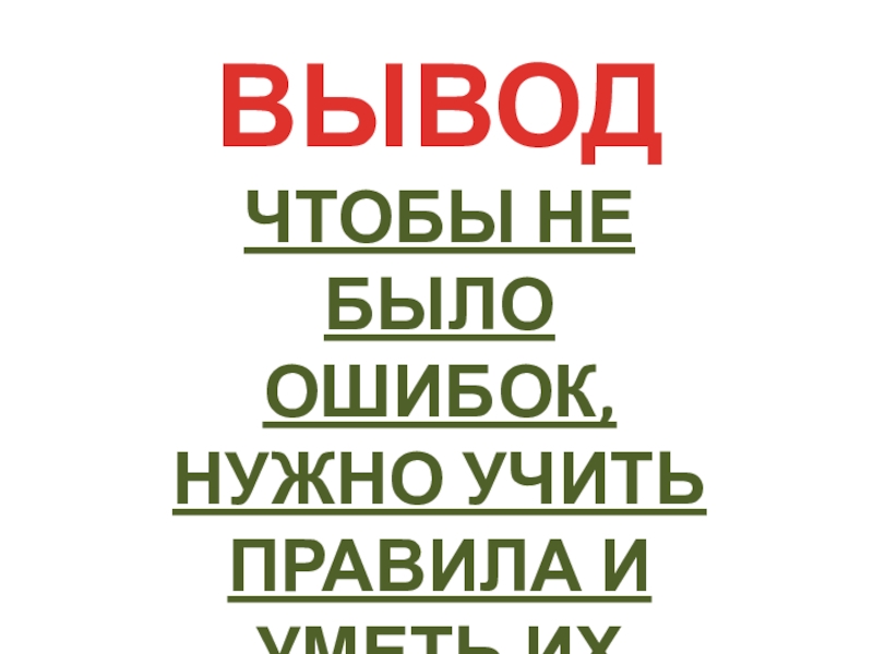 ЧТОБЫ НЕ БЫЛО ОШИБОК,НУЖНО УЧИТЬ ПРАВИЛА И УМЕТЬ ИХ ПРИМЕНЯТЬ.ВЫВОД