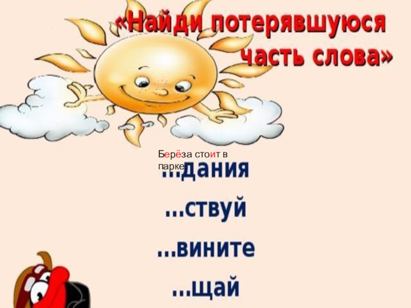 Слайд 5Берёза стоит в парке.