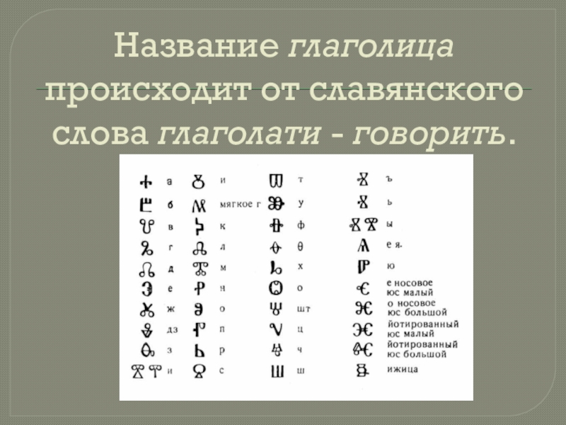 Название глаголица происходит от славянского слова глаголати - говорить.