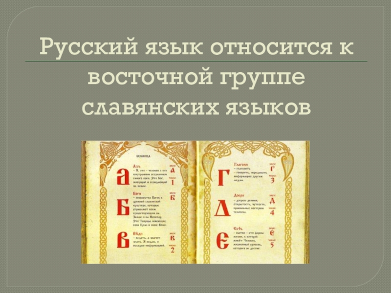 Слайд 2Русский язык относится к восточной группе славянских языков