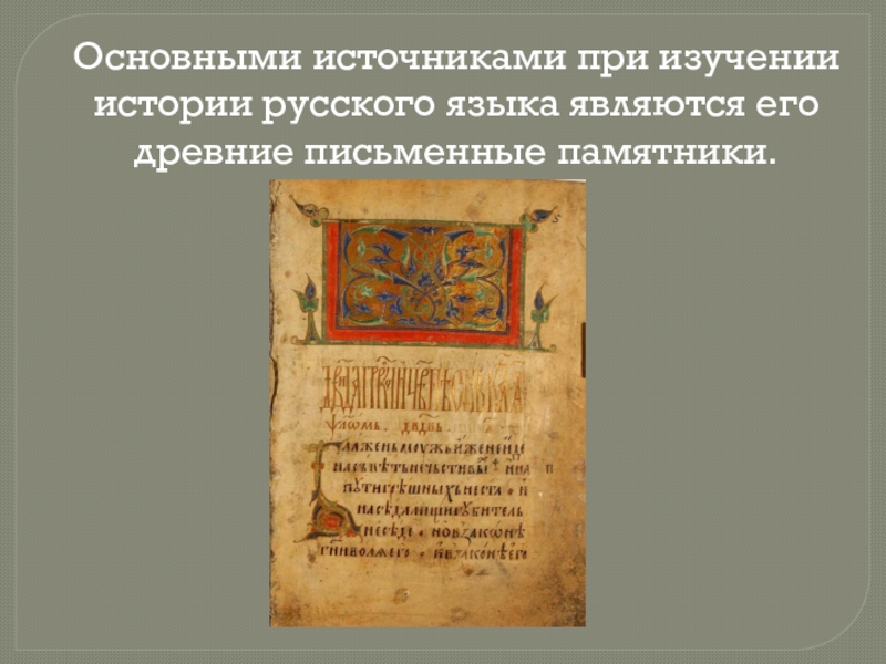 Слайд 5Основными источниками при изучении истории русского языка являются его древние письменные