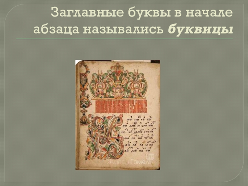 Слайд 21Заглавные буквы в начале абзаца назывались буквицы