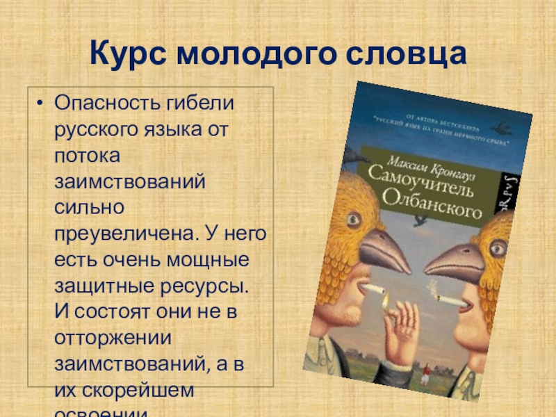 Опасность гибели русского языка от потока заимствований сильно преувеличена.