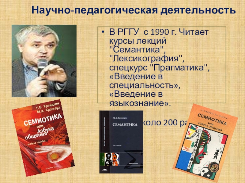 автор монографий и учебников и в то же время – человек широкого круга интересов, обладающий даром доступно и интересно рассказывать о проблемах науки.