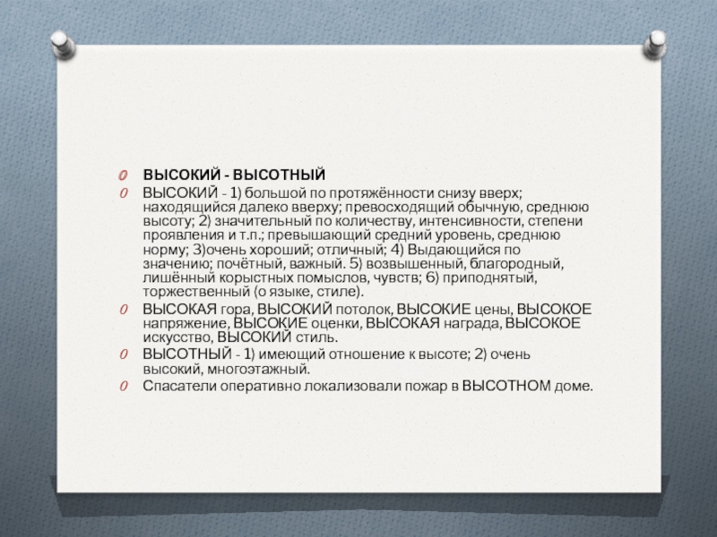 Слайд 11ВЫСОКИЙ - ВЫСОТНЫЙ