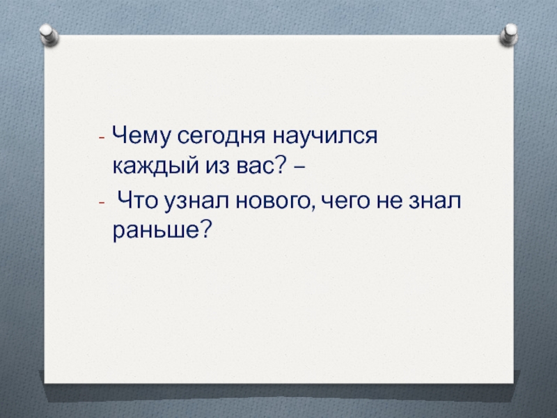 Чему сегодня научился каждый из вас? –
