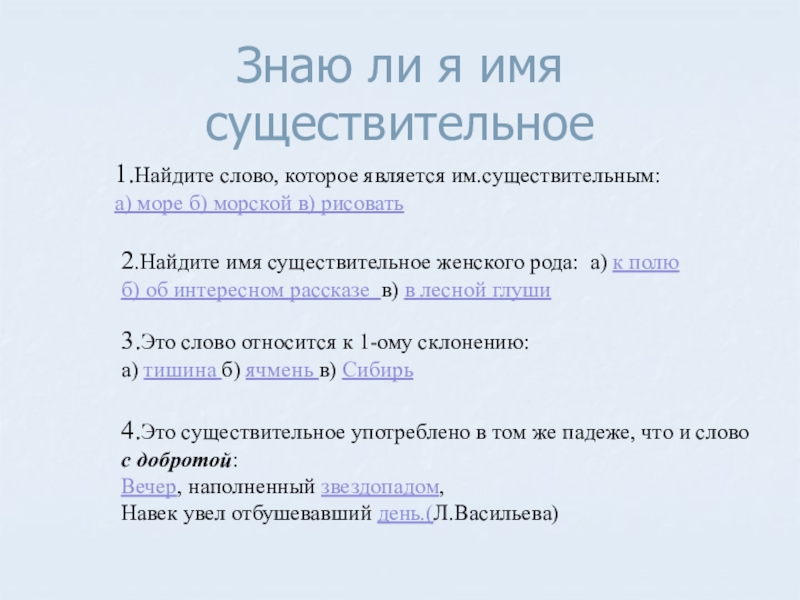 2.Найдите имя существительное женского рода: а) к полю б) об интересном рассказе в) в лесной глуши
