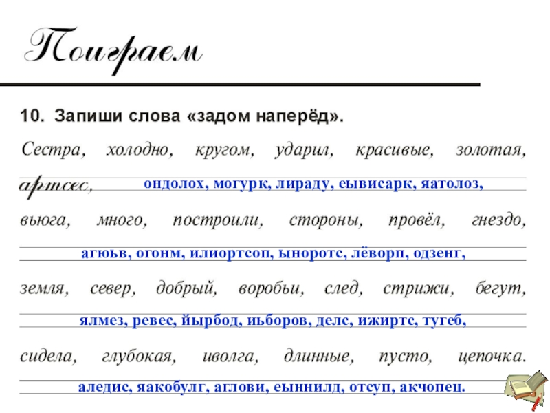 аледис, яакобулг, аглови, еыннилд, отсуп, акчопец.