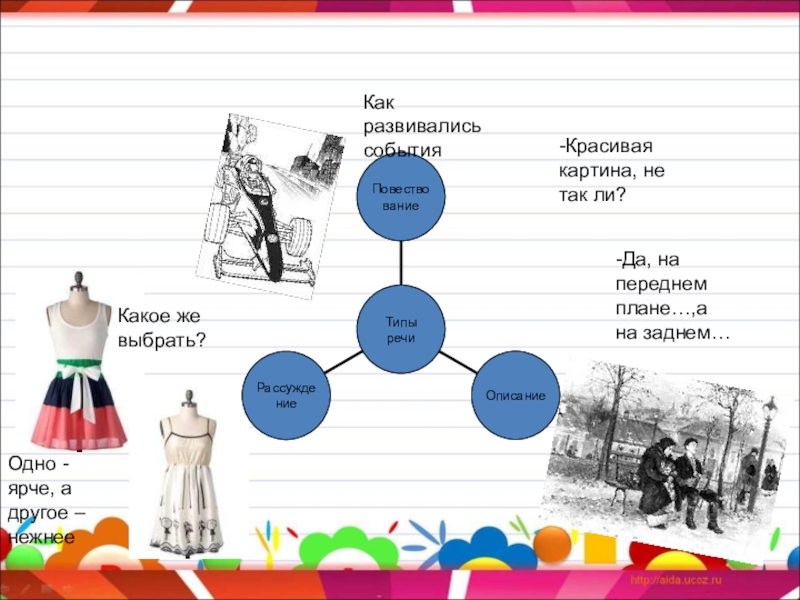 Какое же выбрать?Одно -ярче, а другое –нежнееКак развивались события-Красивая картина, не так ли?-Да, на переднем плане…,а на