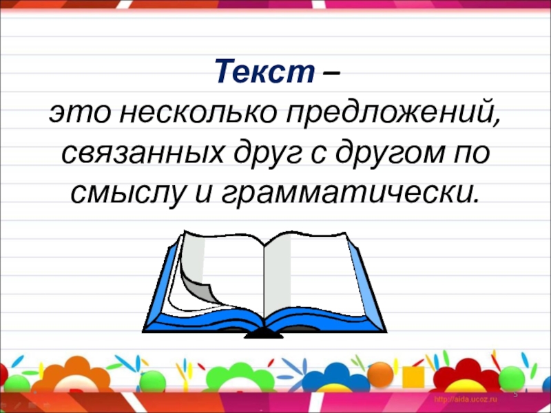 *     Текст –  это несколько предложений, связанных друг с другом по смыслу