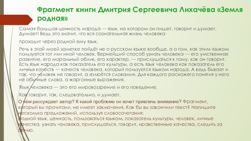 родной язык, ценность, пользоваться языком, показатель культуры, человек, личные качества, узнать человека, прислушаться, говорит, нравственные качества, следить за речью.