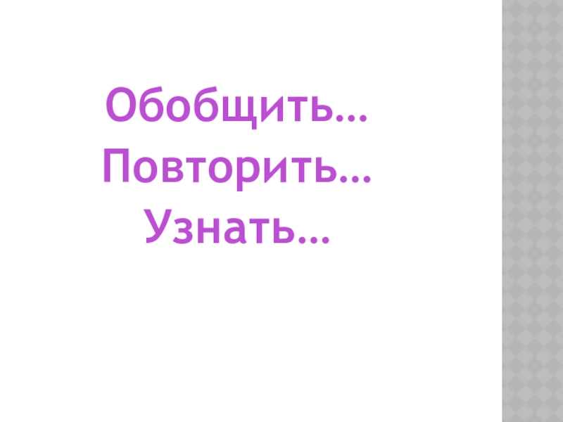 Обобщить…Повторить…Узнать…
