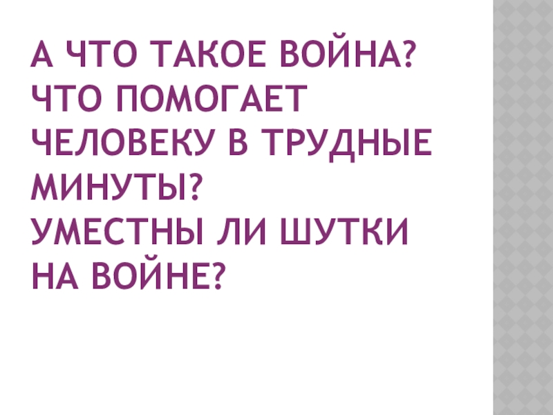 Слайд 2А что такое война? Что помогает человеку в трудные минуты? Уместны ли