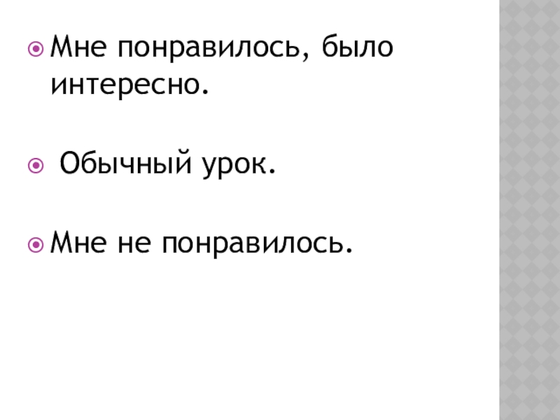 Мне понравилось, было интересно.  Обычный урок. Мне не понравилось.