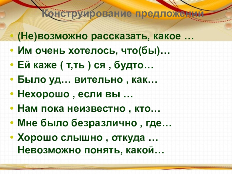 Глаголы, существительные, краткие прилагательные и другие со значением речи, мысли, восприятия,