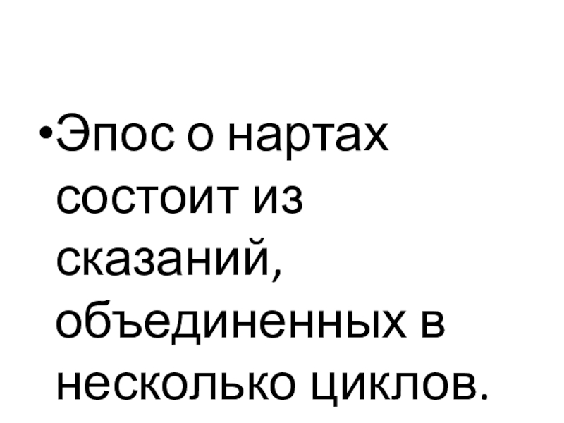 Слайд 6Эпос о нартах состоит из сказаний, объединенных в несколько циклов.