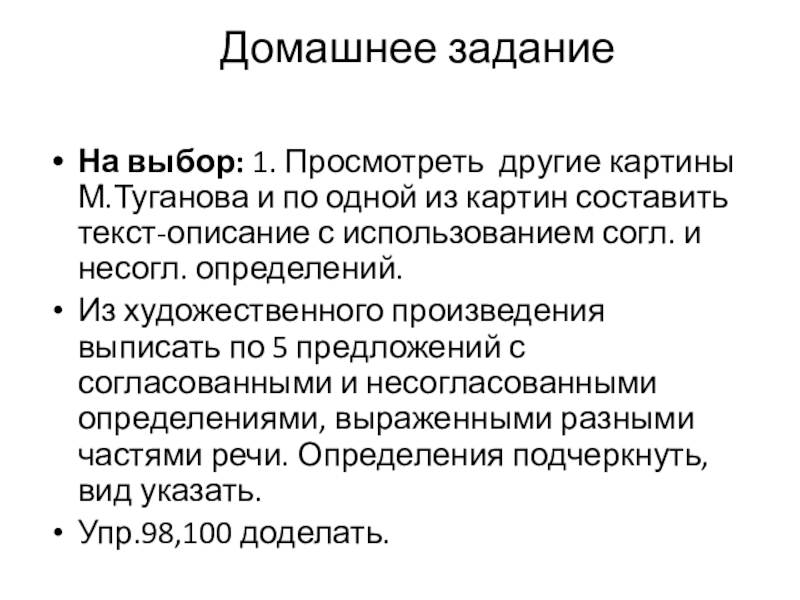 На выбор: 1. Просмотреть другие картины М.Туганова и по одной