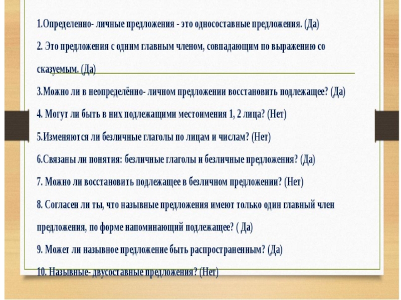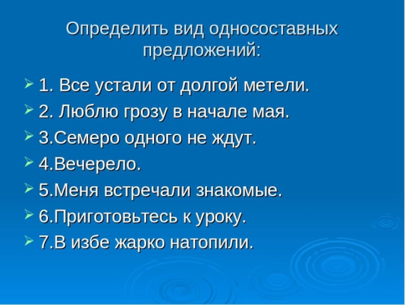 Презентация, доклад по русскому языку по теме Виды односоставных предложений