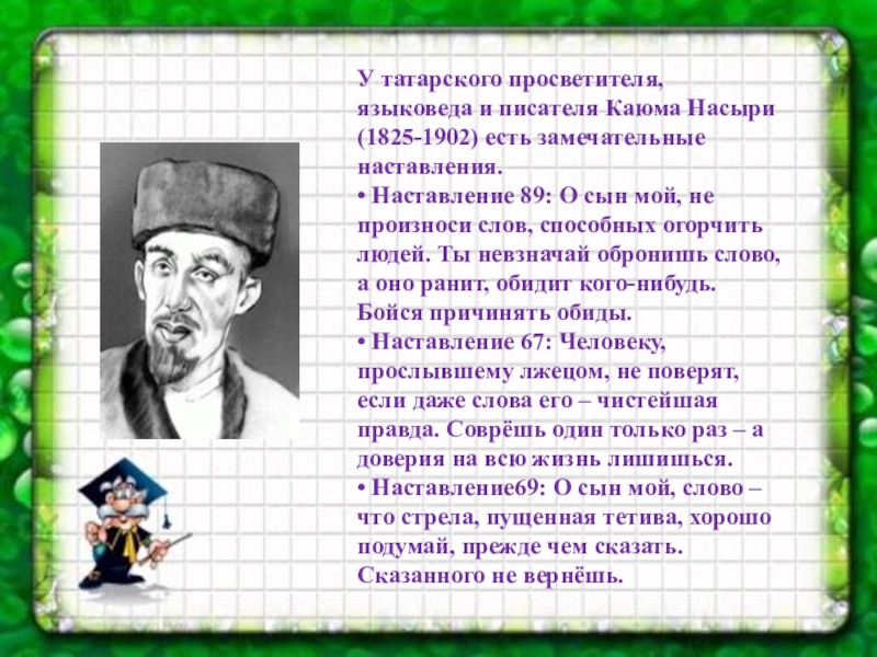 Слайд 14У татарского просветителя, языковеда и писателя Каюма Насыри (1825-1902) есть замечательные