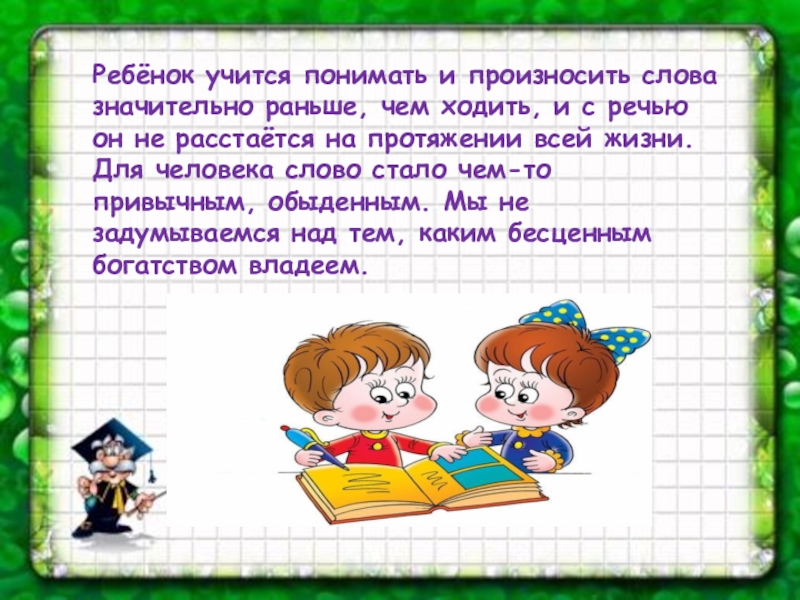 с речью он не расстаётся на протяжении всей жизни. Для человека слово стало чем-то привычным, обыденным. Мы не задумываемся над тем, каким бесценным богатством владеем.