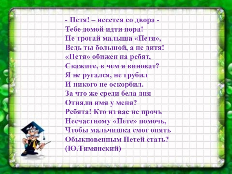 Обыкновенным Петей стать? (Ю.Тимянский)