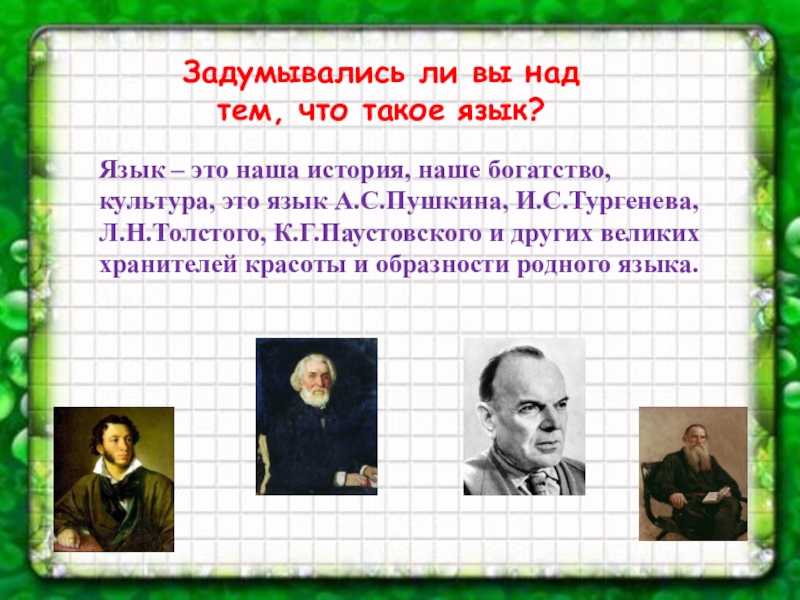 Слайд 5Задумывались ли вы над тем, что такое язык?