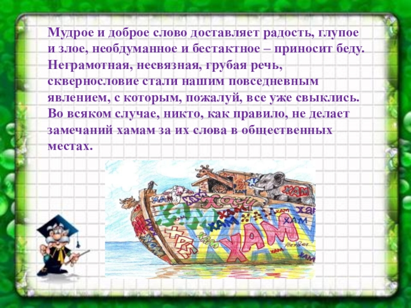 Слайд 13Мудрое и доброе слово доставляет радость, глупое и злое, необдуманное и