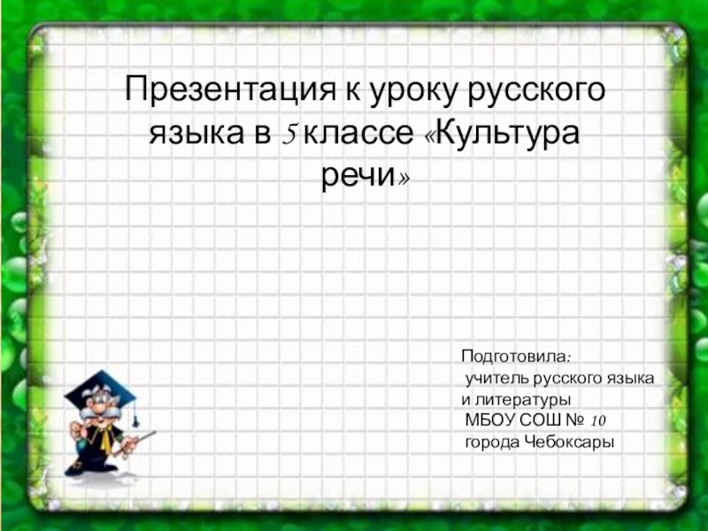 Слайд 1Презентация к уроку русского языка в 5 классе «Культура речи»