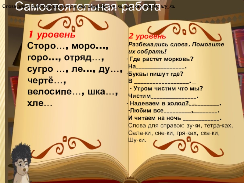 Слова для справок: зу_ки, тетра_ках, сала_ки, сне_ки, гря_ках, ска_ки, шу_ки.