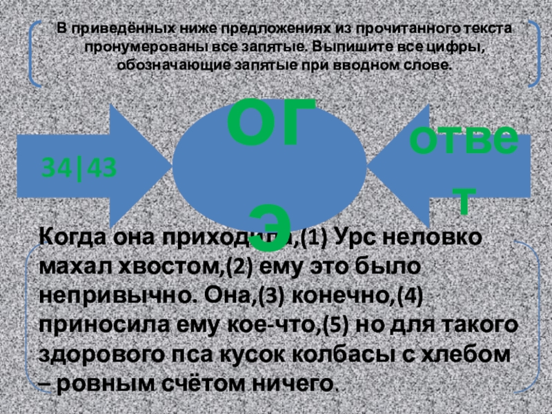 Когда она приходила,(1) Урс неловко махал хвостом,(2) ему это было непривычно. Она,(3) конечно,(4) приносила ему кое-что,(5) но для такого здорового пса кусок колбасы с хлебом – ровным счётом ничего.