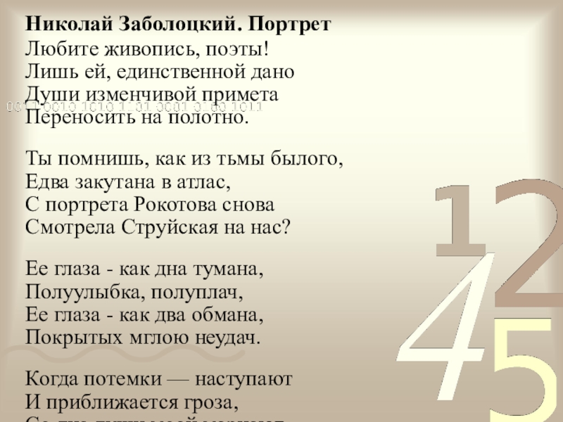 из глубины веков. Мы видим её тонкое лицо с чуть прищуренными глазами, которые смотрят, откуда-то издалека - серьёзно, немного грустно. Этот взгляд как бы не направлен ни на что, он вне времени. Загадочный взгляд, мягкая улыбка, грациозный наклон головы выражают изменчивую сложность духовного мира, одухотворенность внутренней жизни.
