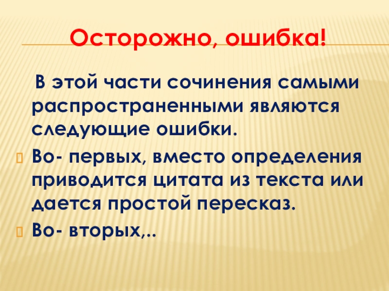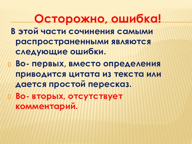 В этой части сочинения самыми распространенными являются следующие ошибки.