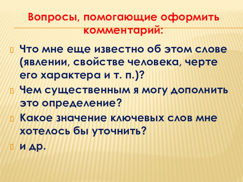 Слайд 33Вопросы, помогающие оформить комментарий: