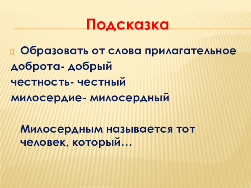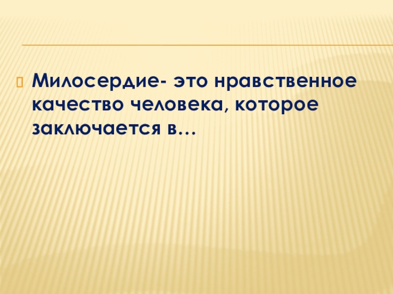 Слайд 23Милосердие- это нравственное качество человека, которое заключается в…